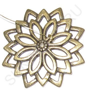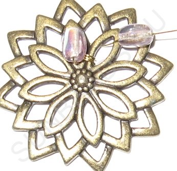 Все, что нам потребуется: филигранный коннектор (декоративный элемент) размером 30 мм; швензы; штифты (с колечком и гвоздики); колечки (не замкнутые); проволока диаметром 0,30-0,40 мм; бусины продолговатые или овальные размером 6 мм 16 шт.; бусины размером 4 мм 16 шт.; инструменты для работы с проволокой (круглогубцы, плоскогубцы, кусачки). Фурнитуру лучше подбирать одного цвета. Если нет в наличии подходящей проволоки, можно использовать близкую по цвету, т.к. ее практически не будет видно. В данном случае фурнитура цвета старинной бронзы.