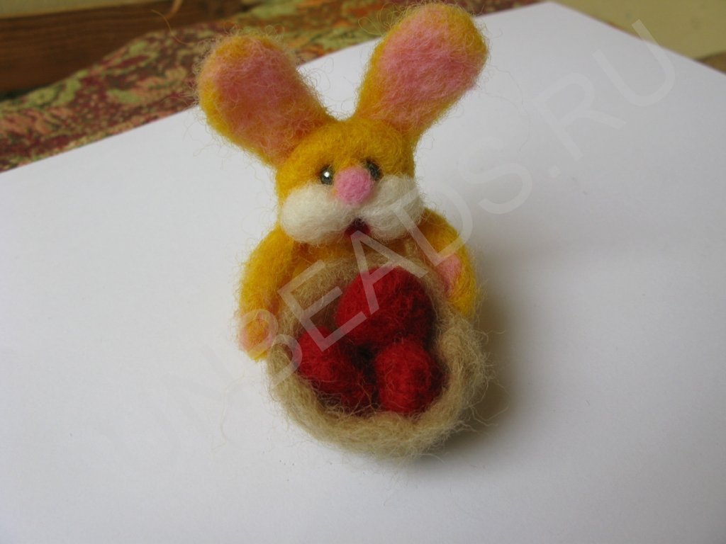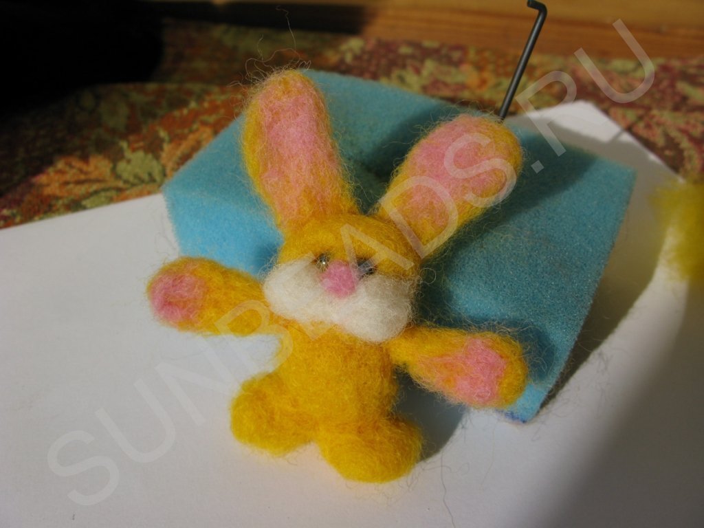 Мастер-класс по сухому валянию «Брошь Зайка»#