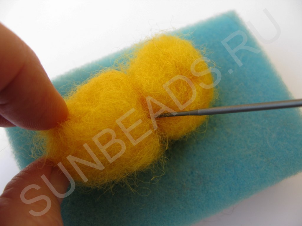 При помощи иглы на поролоне из них формируются шарики, легкие, почти воздушные.