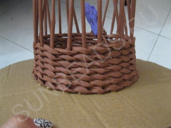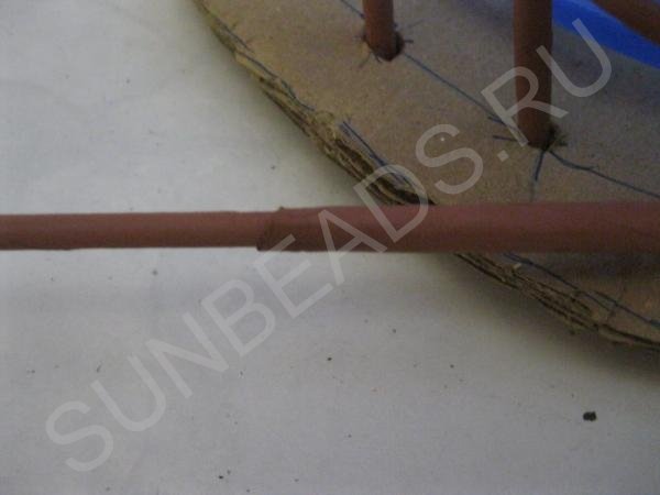 Через несколько рядов расстояние между стоечками увеличивается и, для того чтобы сохранить вид изделия, между ними добавляется еще по одной трубочке: