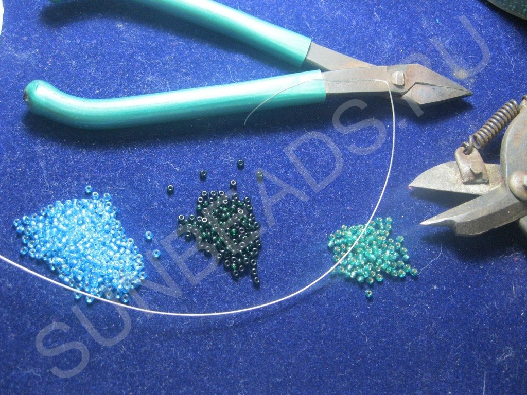 Кончики проволоки можно развести в стороны, чтобы бисер не слетел или же, скрутить их плоскогубцами.