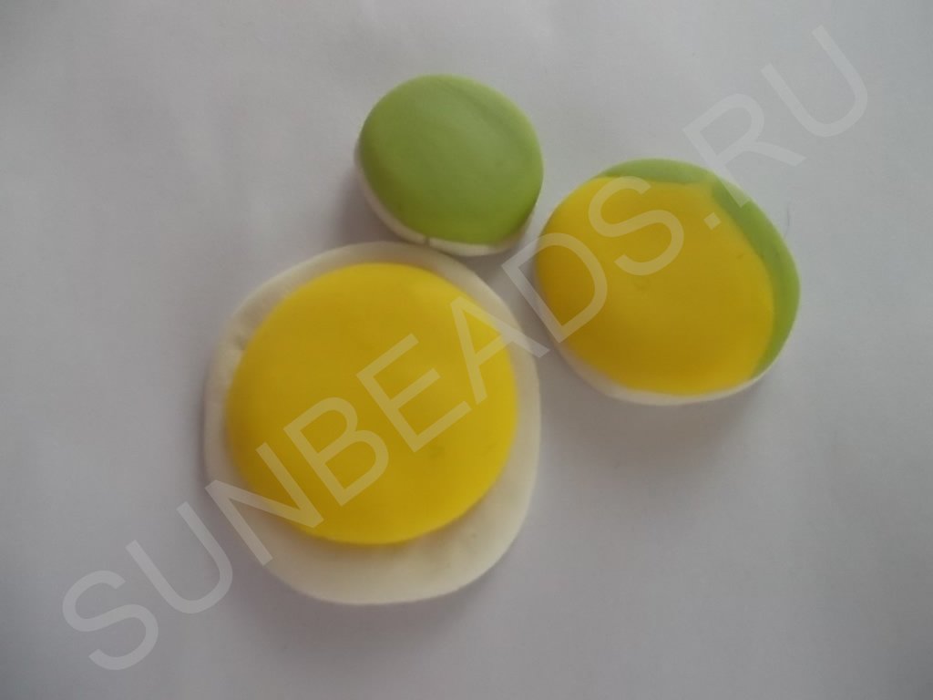 - Подготавливаем материал ярко желтого и травяного цвета, тщательно его разминаем, делая более пластичным и податливым. Чтобы мягкая пластика не прилипала к поверхности молдов, припудриваем их тальком или обычной присыпкой.