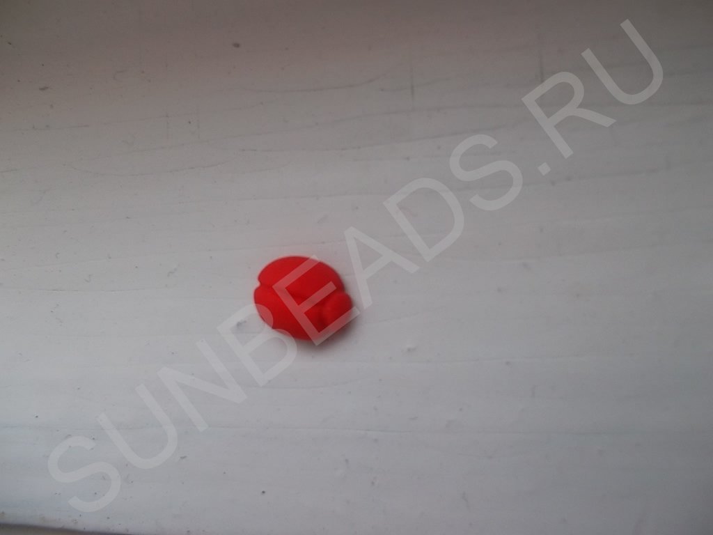- Пока детали будущего украшения застывают или запекаются, займемся насекомым. Шарик из красной пластики немного расплющиваем и с помощью шпажки или зубочистки делаем на нем линии головы и крыльев. Красим голову и рисуем пятнышки все той же гуашью.