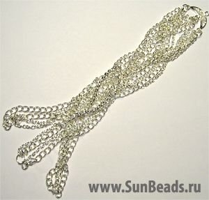 Отмерьте по линейке примерно равные отрезки цепочки 12 шт., т.е. по 4 шт. на каждую «прядь» косы.