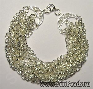 В основе изготовления браслета лежит плетение обычной косички из цепочки.
