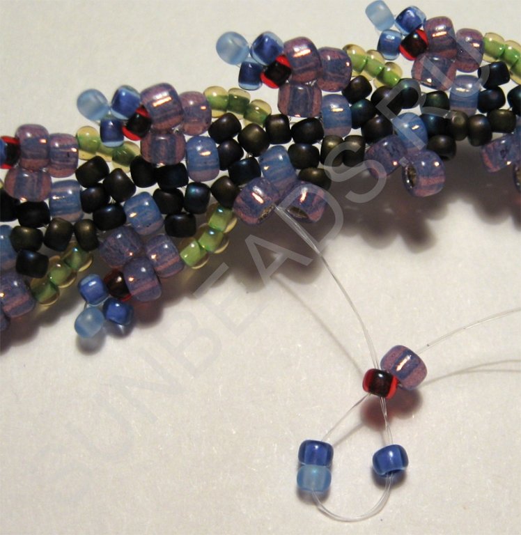 Плетем следующее звено из бисерин в том порядке, как показано на схеме: