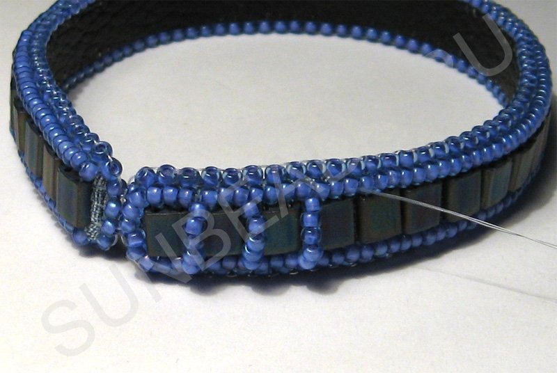 Выводим нить из крайней круглой бисерины вышитого ряда.