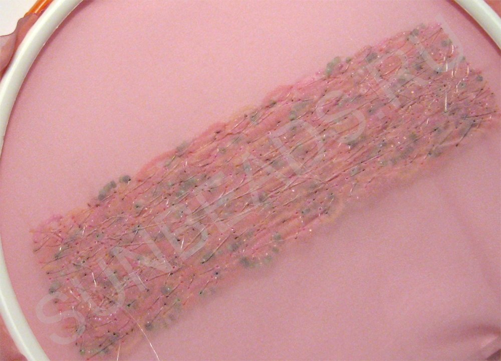 Теперь каждую бусину надо пришить к ткани.