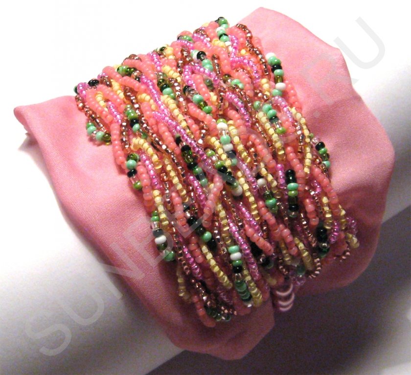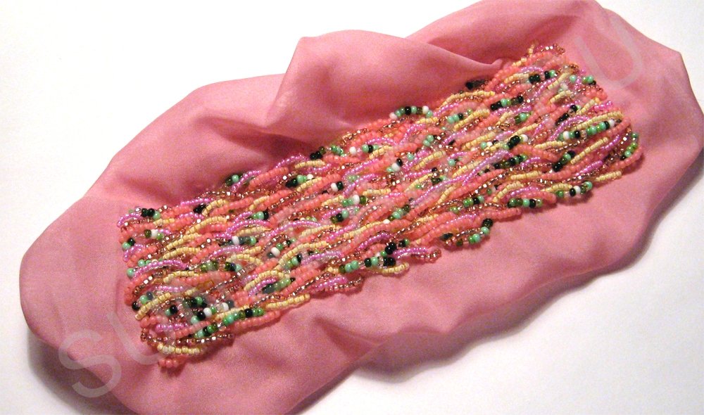 Дальше пришиваем бисер и так расширяем браслет до нужного размера.
