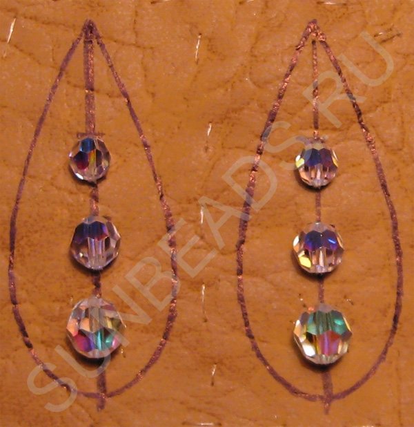 Пришиваем на каждую каплю по 3 бусины. Они должны быть пришиты на одинаковом уровне на обеих каплях.