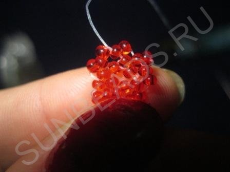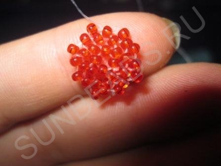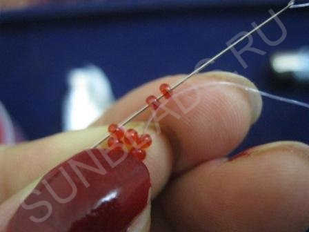 Бисер. В данном случае был использован материал красного цвета;