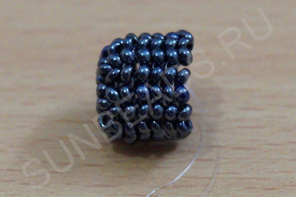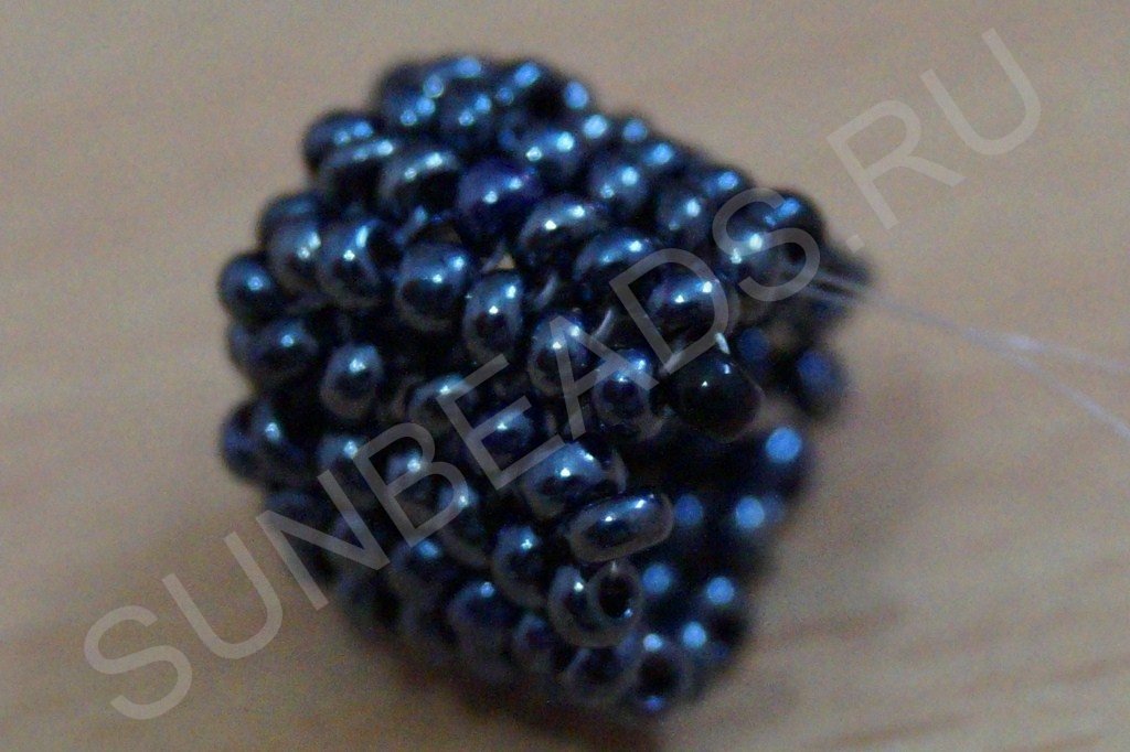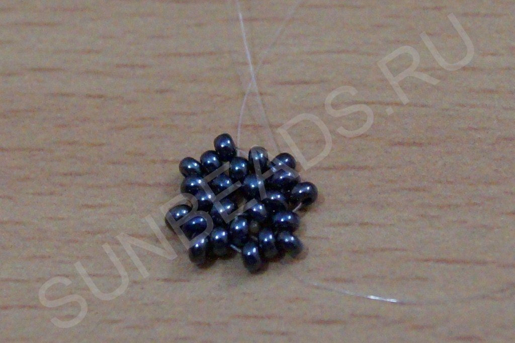 Делаем шаг ндебеле. Снова выводим иголку в соседнюю бисерину предыдущего ряда. Так продолжаем по всему периметру. Шестой ряд будет выглядеть следующим образом: