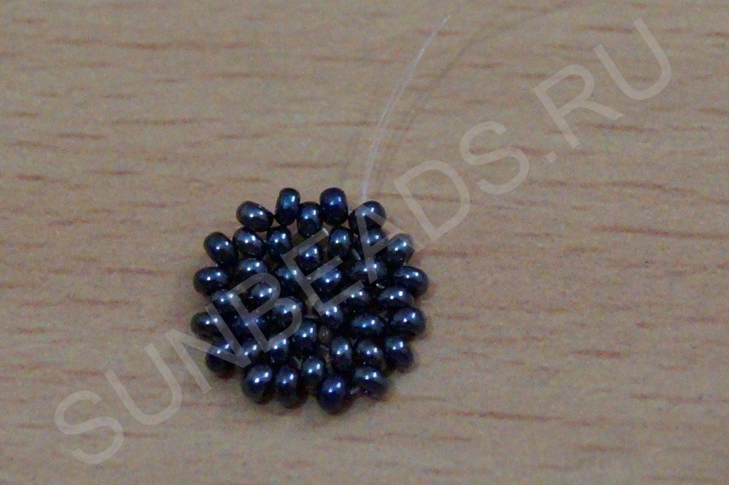 Выводим нить в соседнюю бисерину предыдущего ряда: