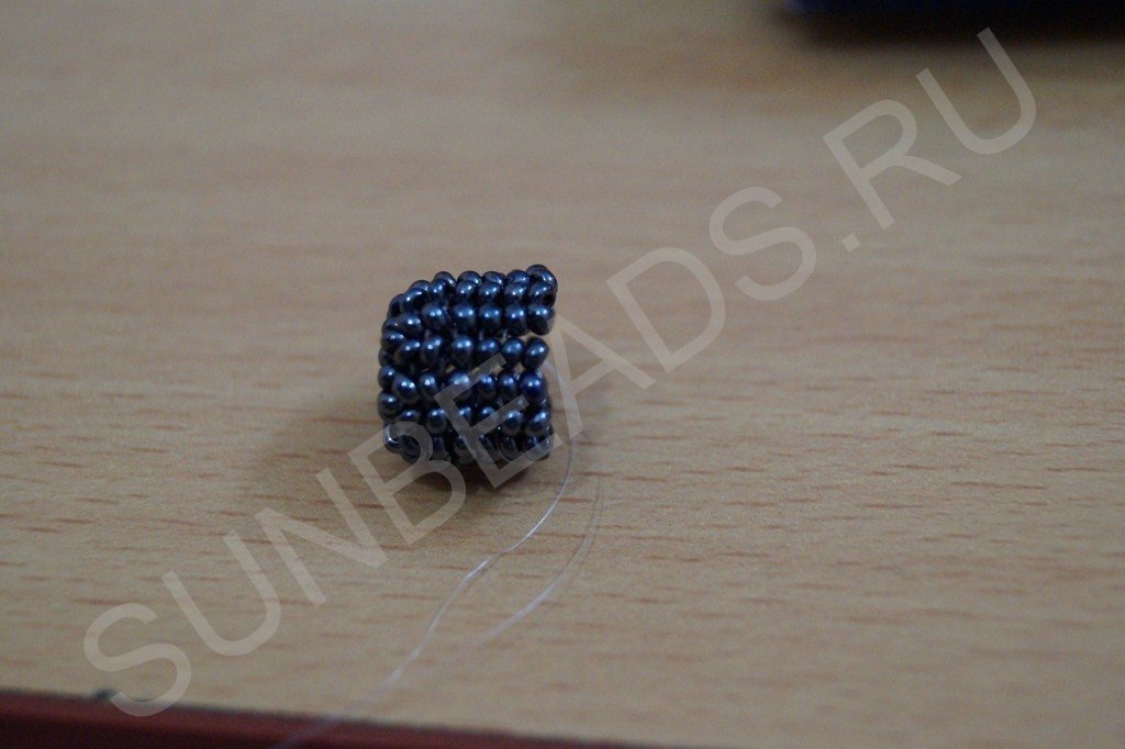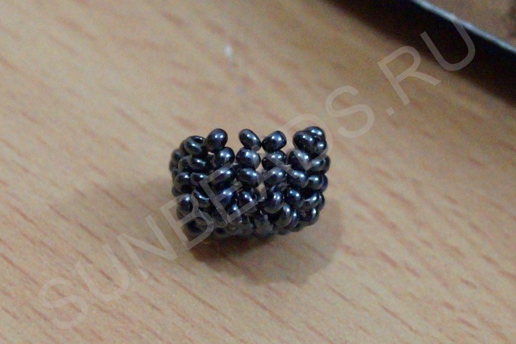 Стоит сказать, что плетение по принципу «ряд ндебеле ряд мозаики» позволяет нам увеличить «шапочку» концевика. В зависимости от того, для какого украшения необходимо создать концевик, его (концевика) диаметр будет различен.