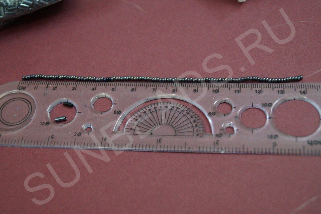 Теперь между каждым звеном первого ряда присоединяем бисерину: