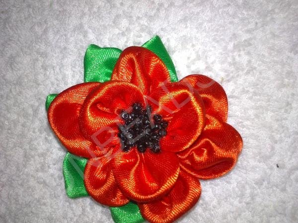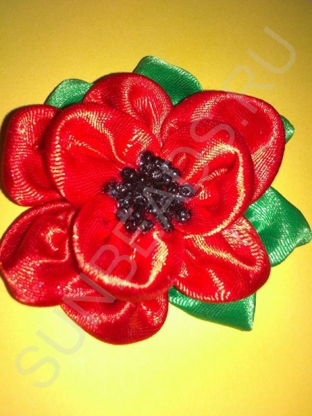 Техника канзаши позволяет создавать различные цветочки. Сделать ромашки и простые цветочки очень просто, но и очаровательные маки сделать несложно. В итоге получится вот такой роскошный мак.