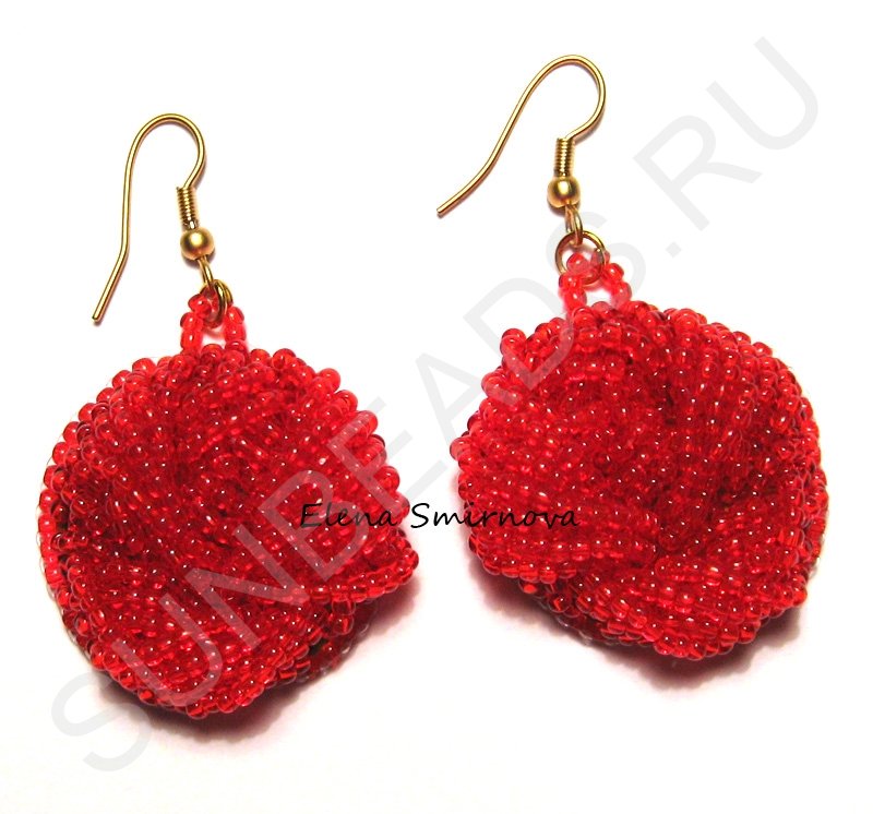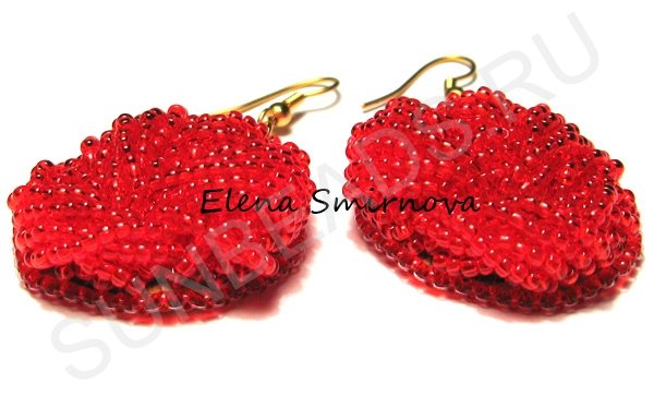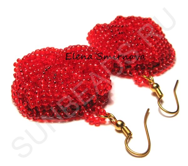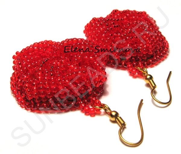 Объемные серьги из бисера «Красные цветы»#
