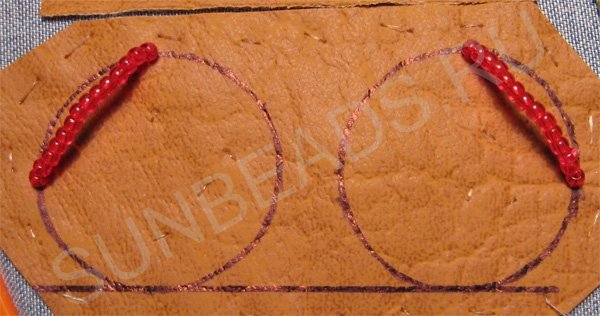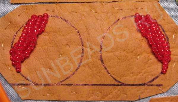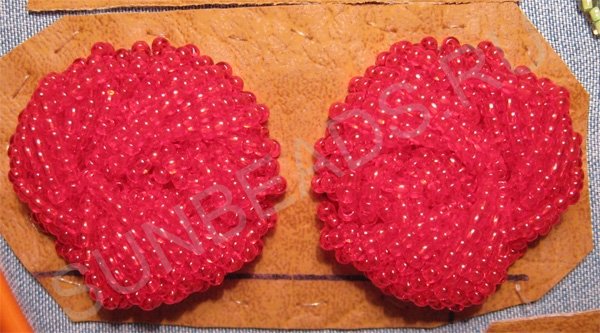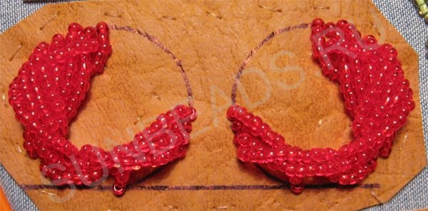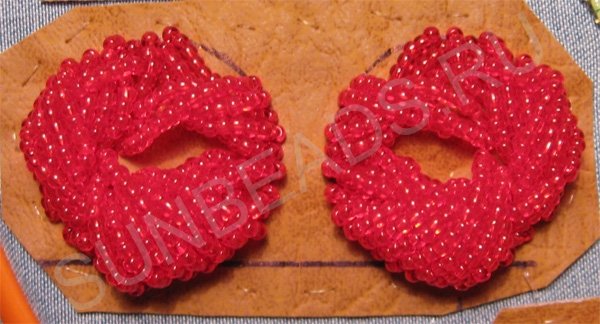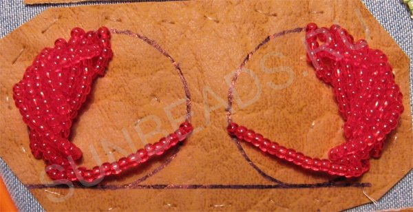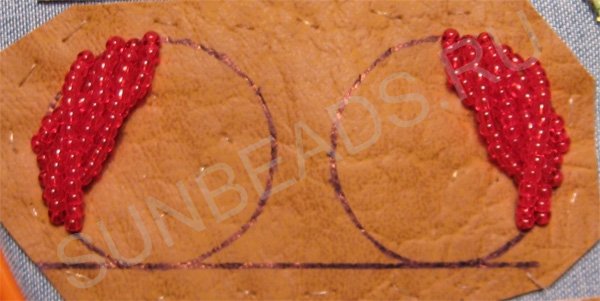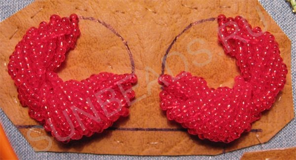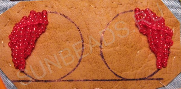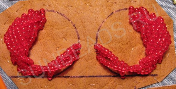 Пришиваем такие бисерные дуги возле первой дуги. Зеркально повторяем на втором круге.