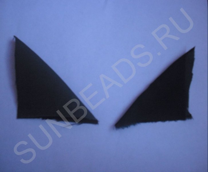 Создавая лепесток вам нужно взять по одному серому и черному лоскуту и сложить их по диагонали для создания формы треугольника.
