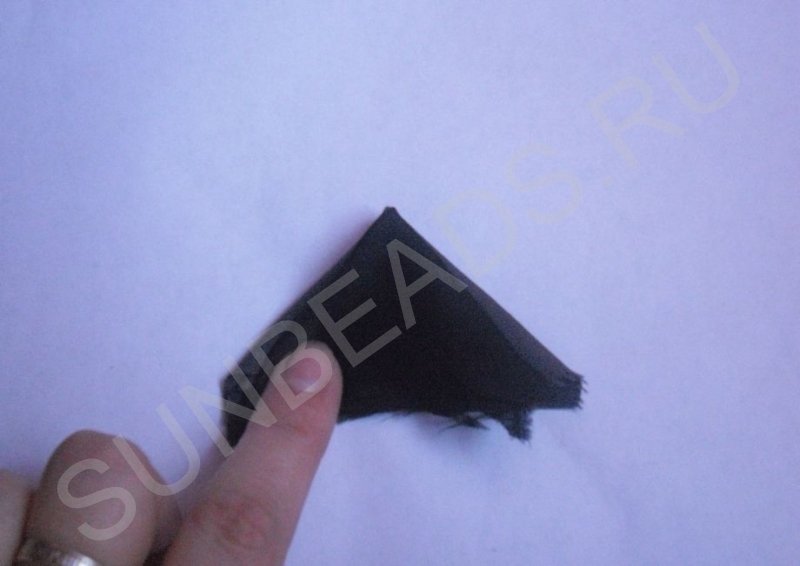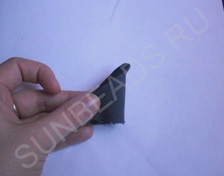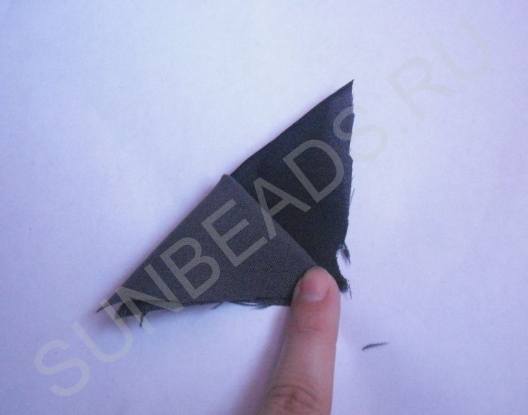 После этого придерживая пальцем сложенные углы необходимо точно так же сложить черный треугольник. В результате получается, что сверху виден только черная ткань, а снизу находится серый материал.
