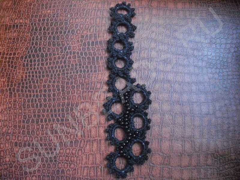 Теперь следует вам сделать вышивку из бусин между вязаными кольцами.