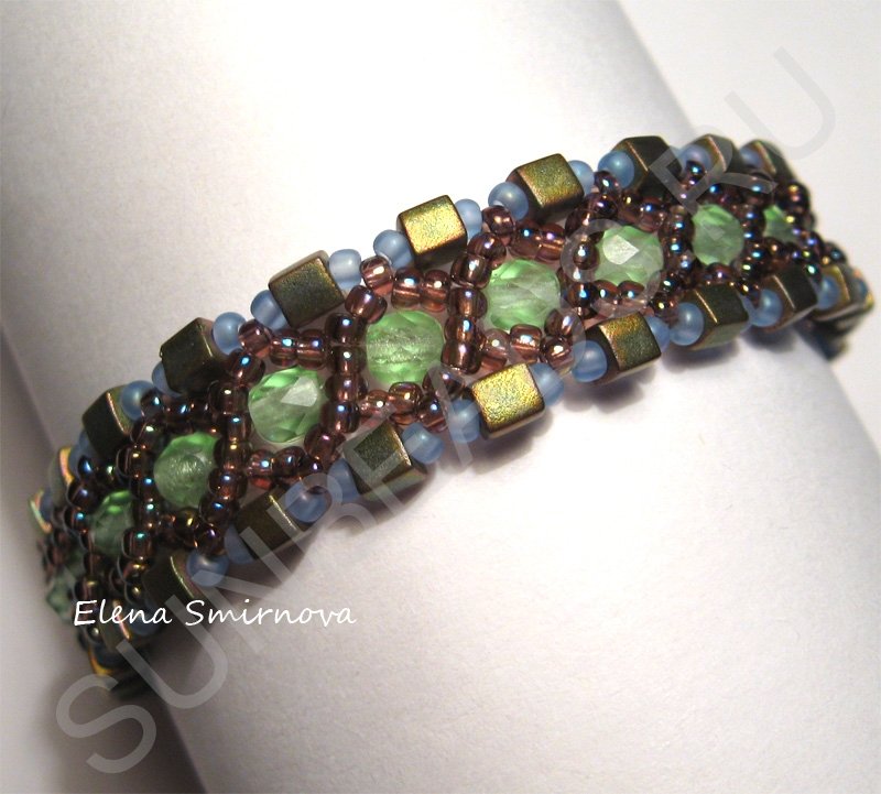 В этом мастер-классе я хочу показать плетение одного из моих любимых браслетов с применением граненых бусин и японского кубического бисера. Браслет простой в изготовлении и с плетением справится любой начинающий мастер.