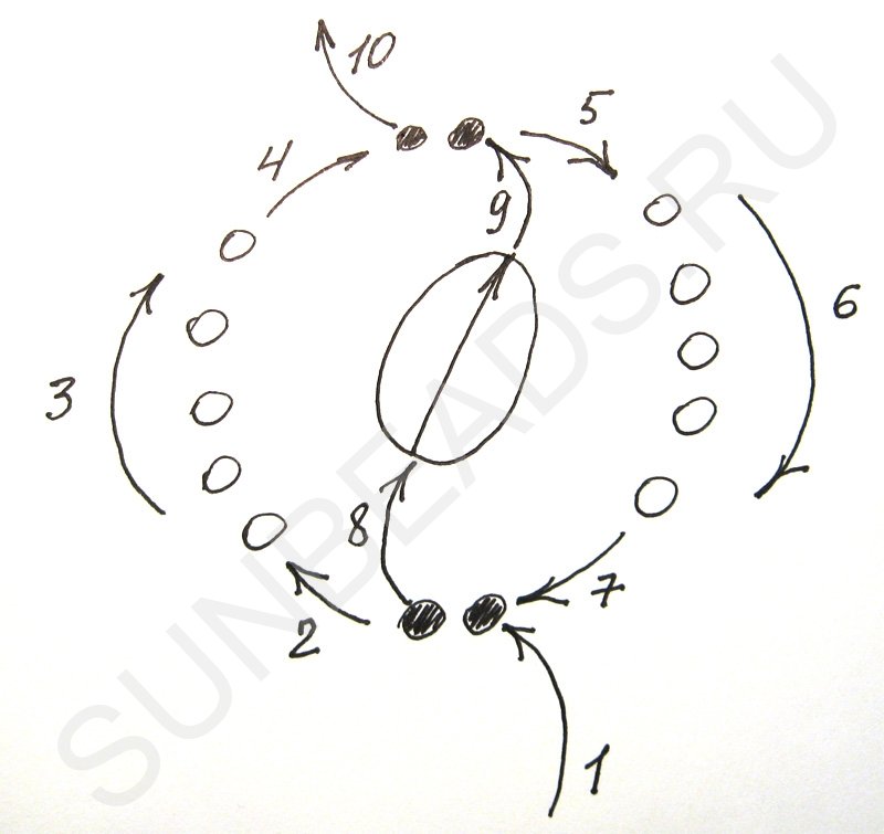 По представленной ниже схеме набираем бисер, замыкаем в кольцо.