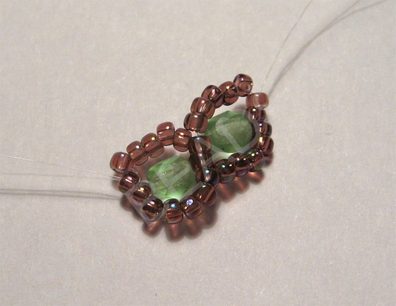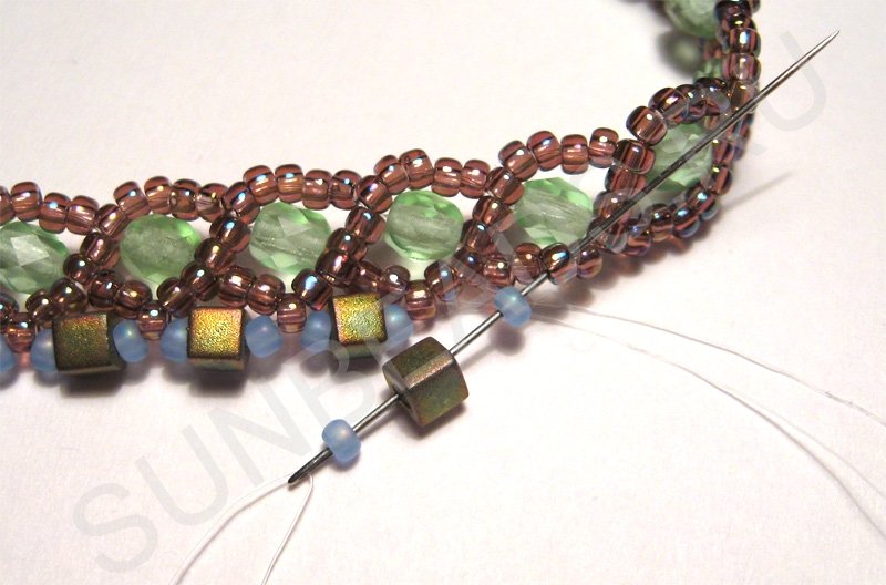 Теперь по схеме ниже вплетаем кубический и круглый бисер.
