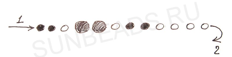 По схеме набираем бисер. Большие заштрихованные это круглый бисер размера 8.