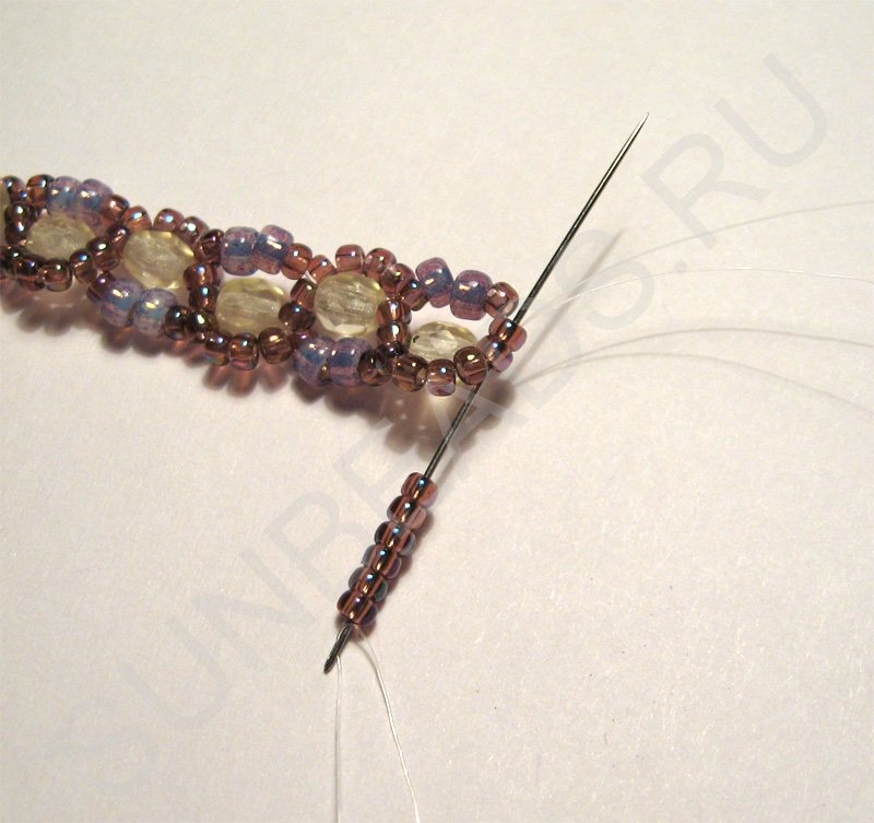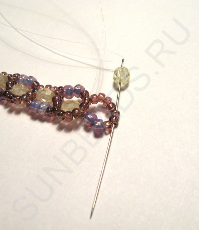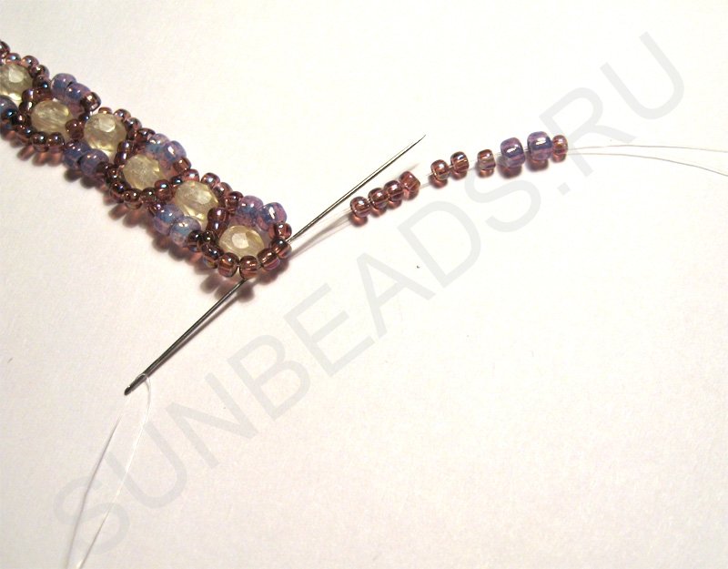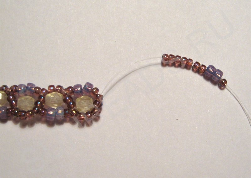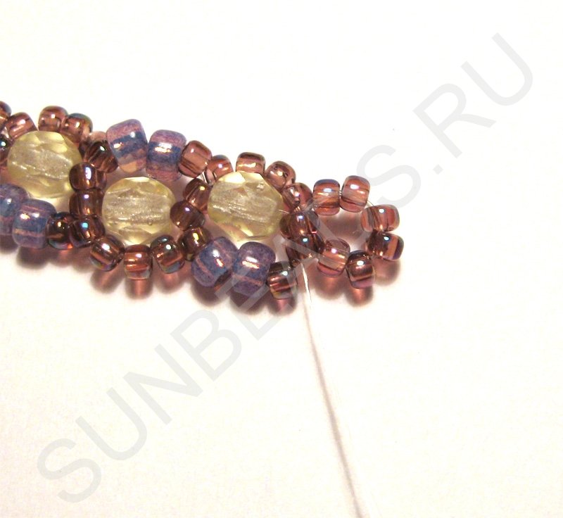 Между этими бисеринами вплетаем бусины в форме капли MIYUKI Drops.