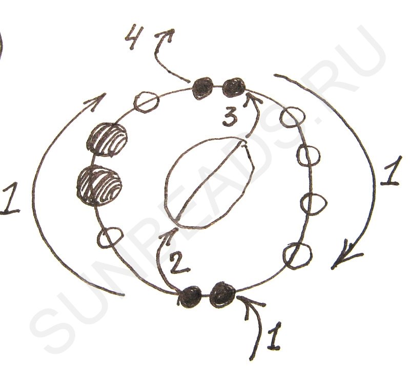 В середине кольца крепим граненую бусинку, как показано на схеме.