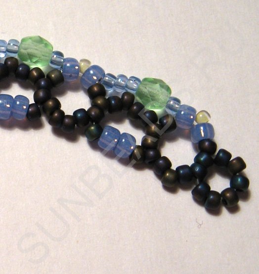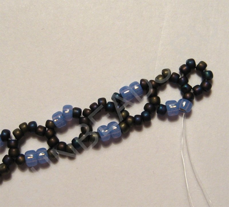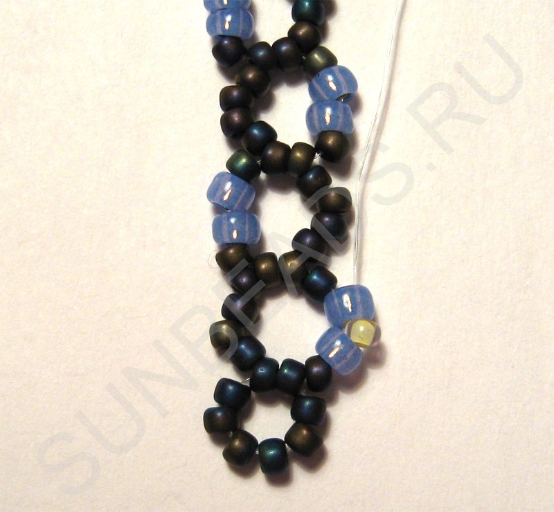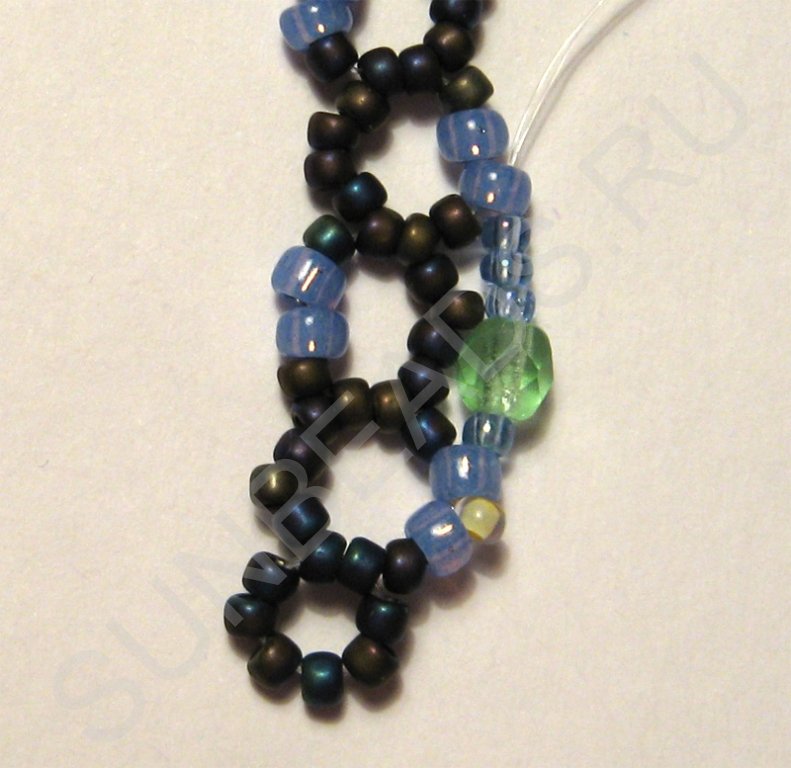 Такую бисерную цепочку получаем. На торце плетем кольцо из бисера. Потом его будем использовать для крепления фурнитуры.
