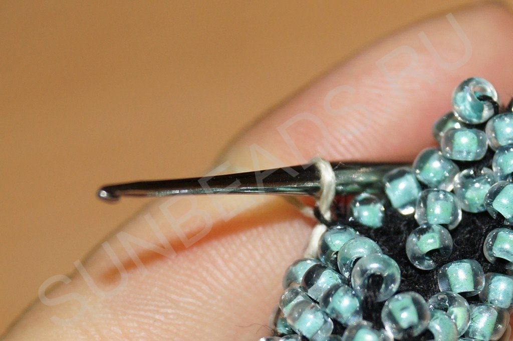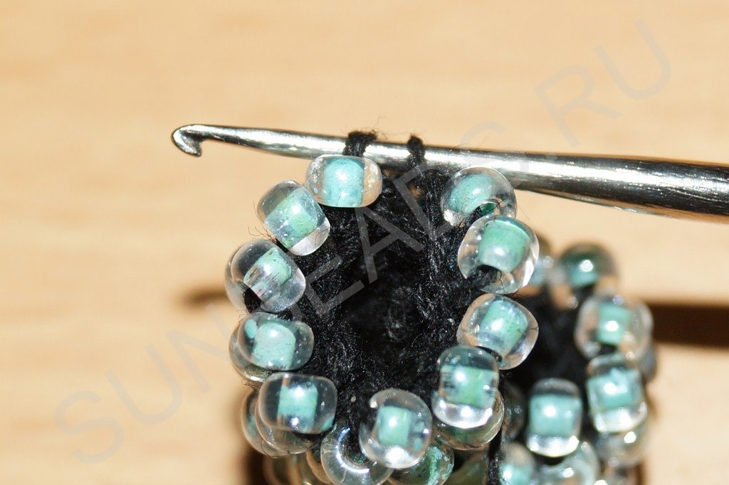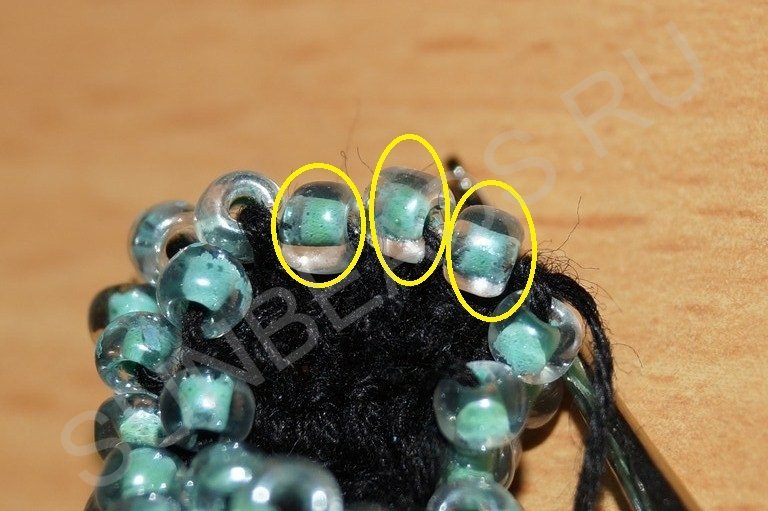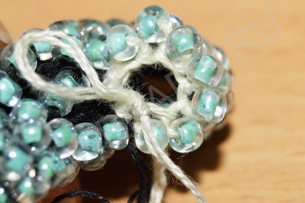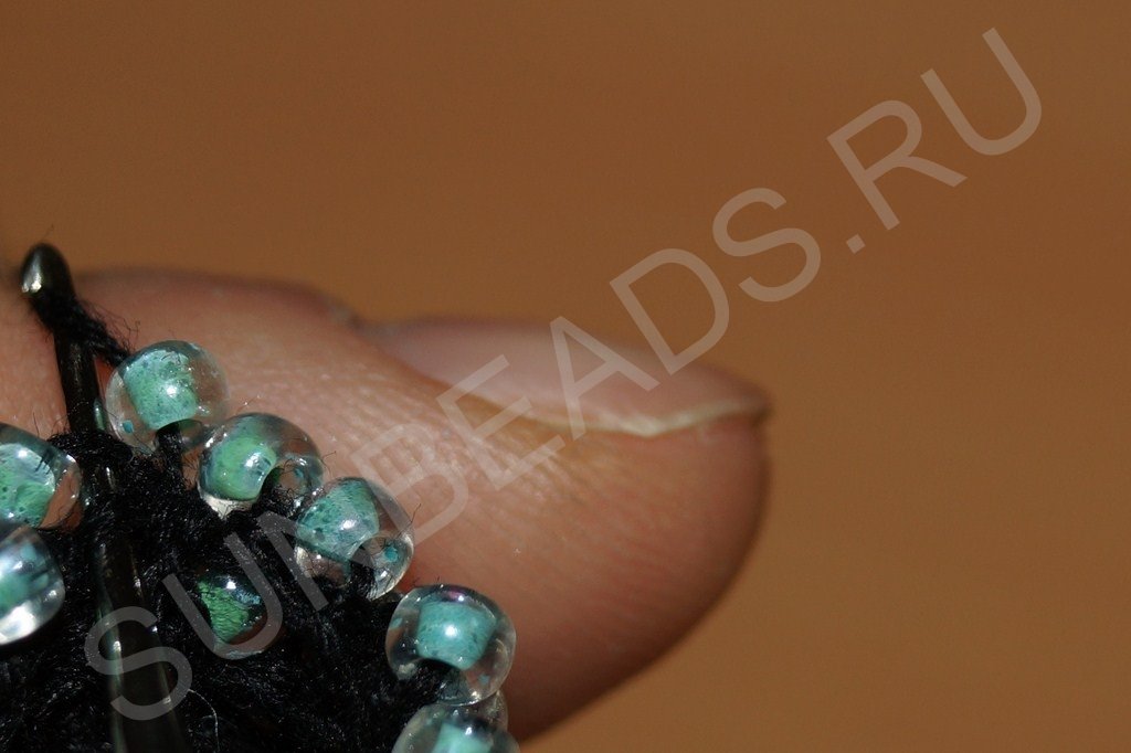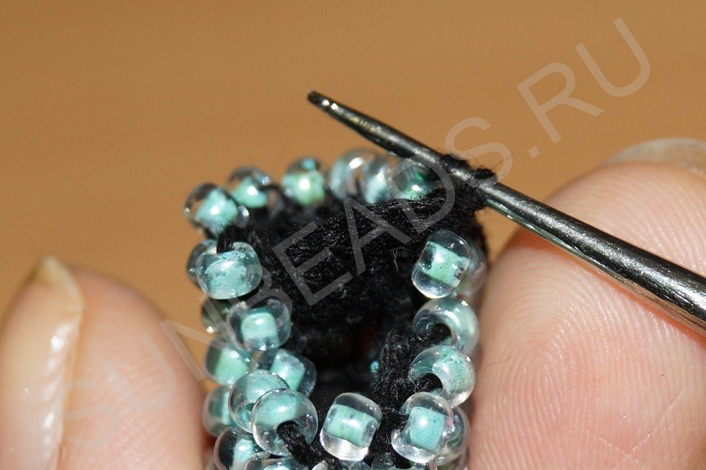 На четвертом ряду делаем полный круг с бисеринами: