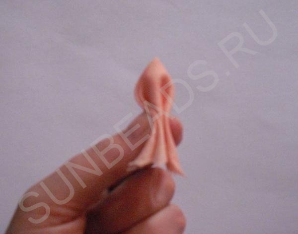 После этого треугольник опять необходимо сложить пополам. Теперь можно увидеть какой лепесток получится в результате.