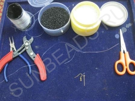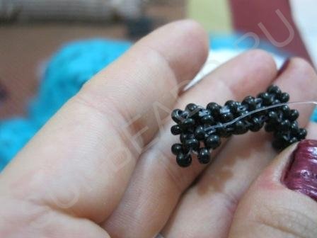 Наиболее возможная тонкая леска. Это очень важно, так как в процессе работы иногда через бисерину необходимо пропускать леску несколько раз;
