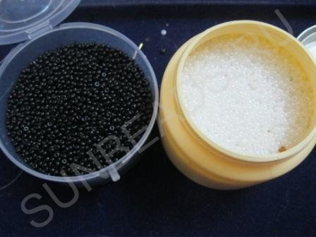 Бисер двух цветов (здесь белый и черный) одинакового диаметра;