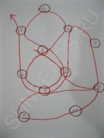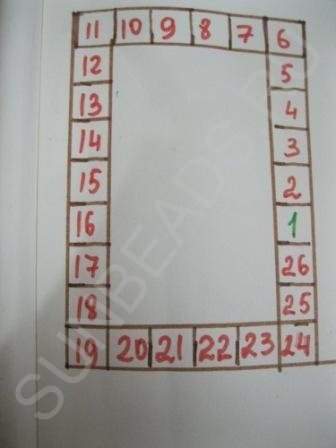 Набираем еще три бусинки и проходим в верхнюю бусину предыдущего четырехугольника: