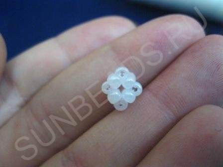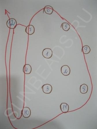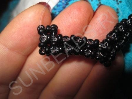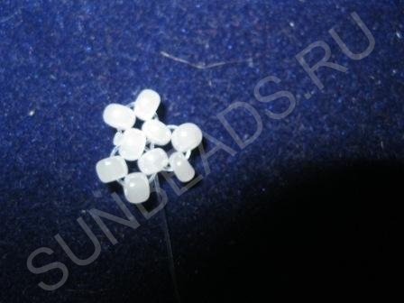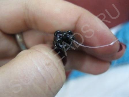 Затягиваем последнюю бусину, проходим через верхнюю, боковую правую, нижнюю боковую левую бусины.