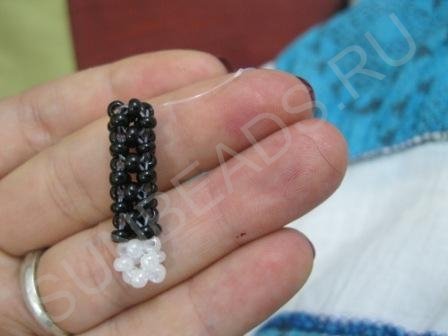 Проходим в следующую основную нижнюю бусинку, набираем два элемента, прикрепляем их боковой и нижней граням: