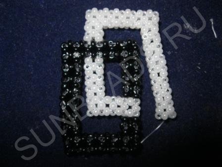 В конце добавлять следует только одну бисерину. Получаются вот такие два квадратика: