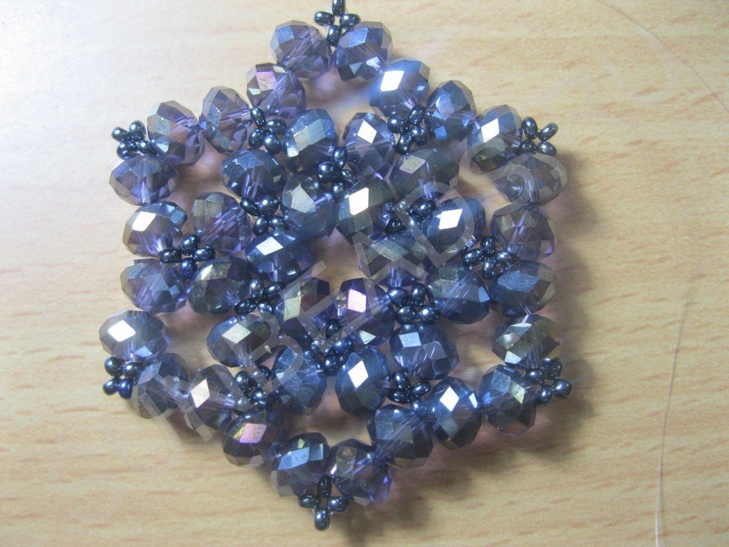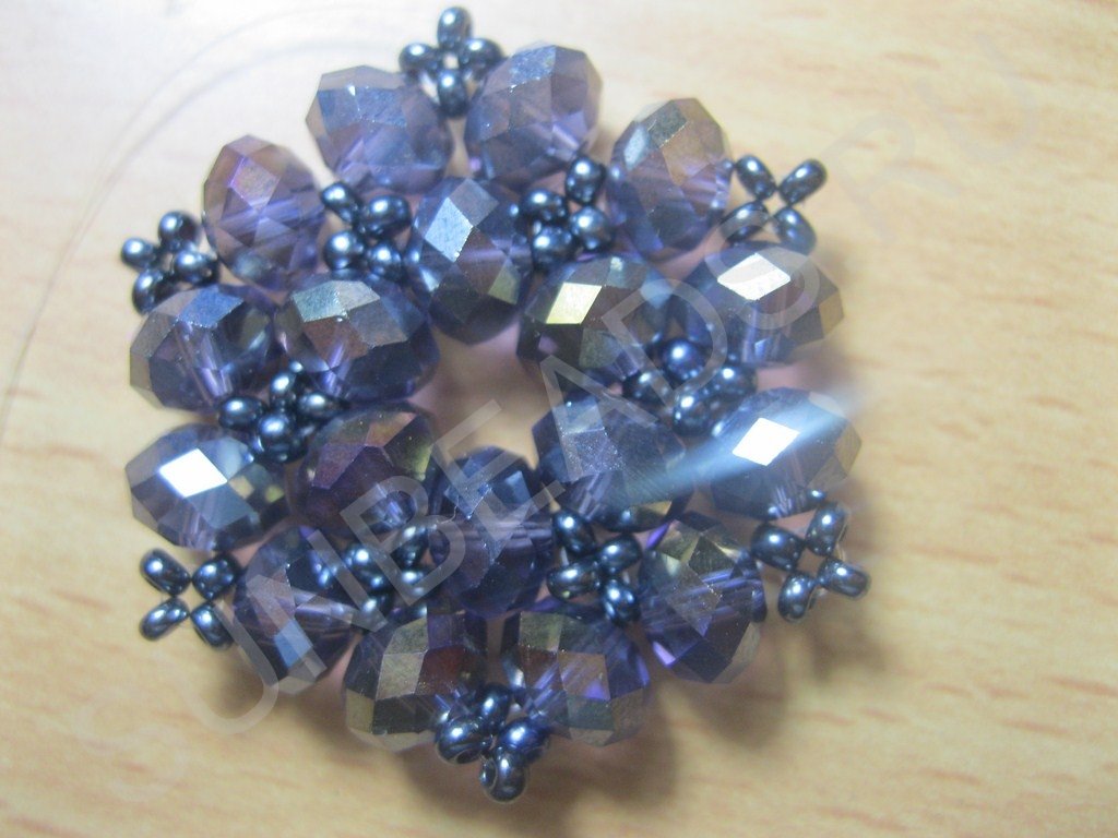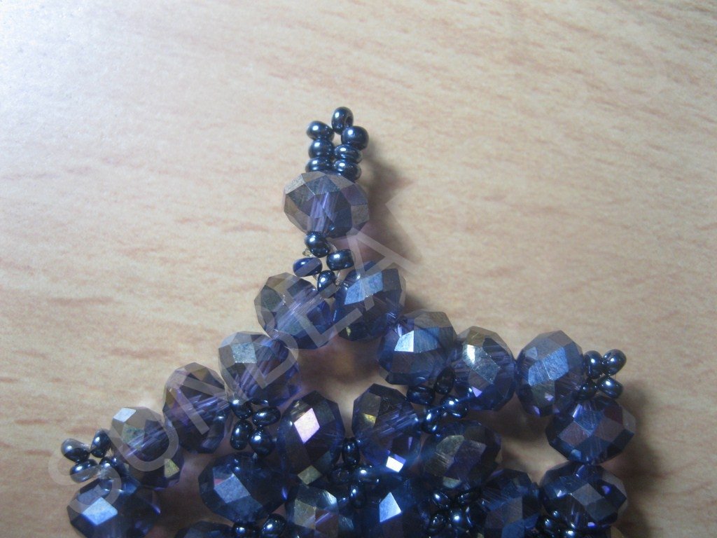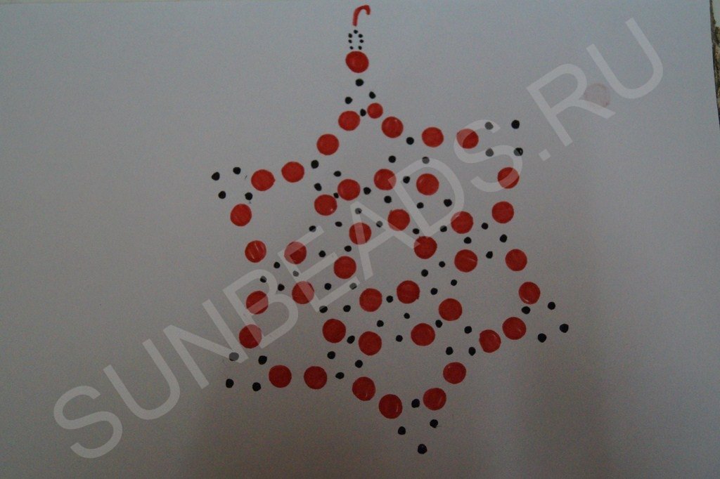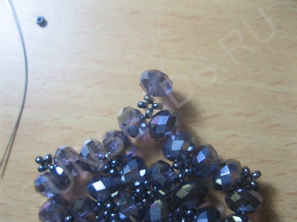 Там, где находится бисеринка (только в последнем ряду) формируем крестик: