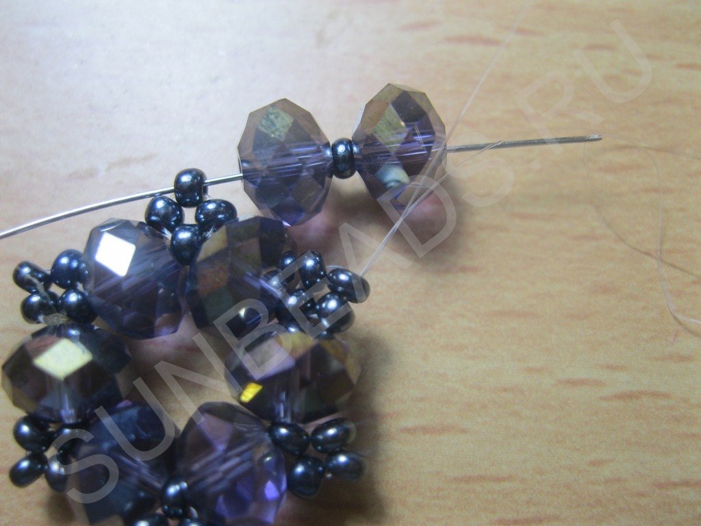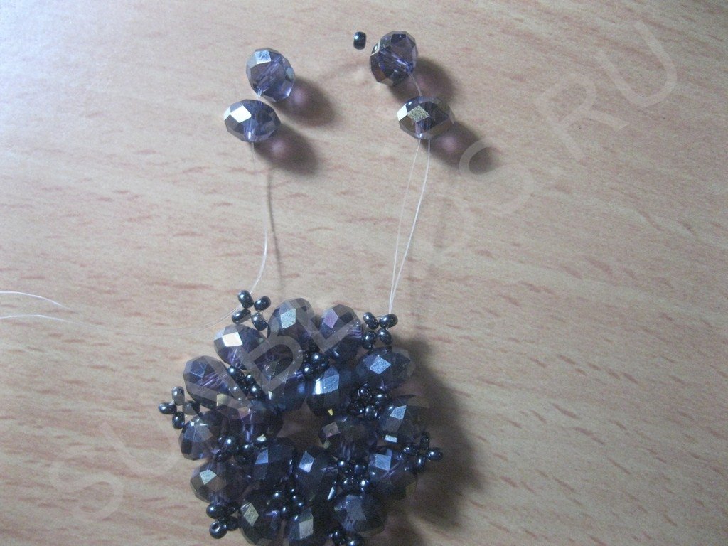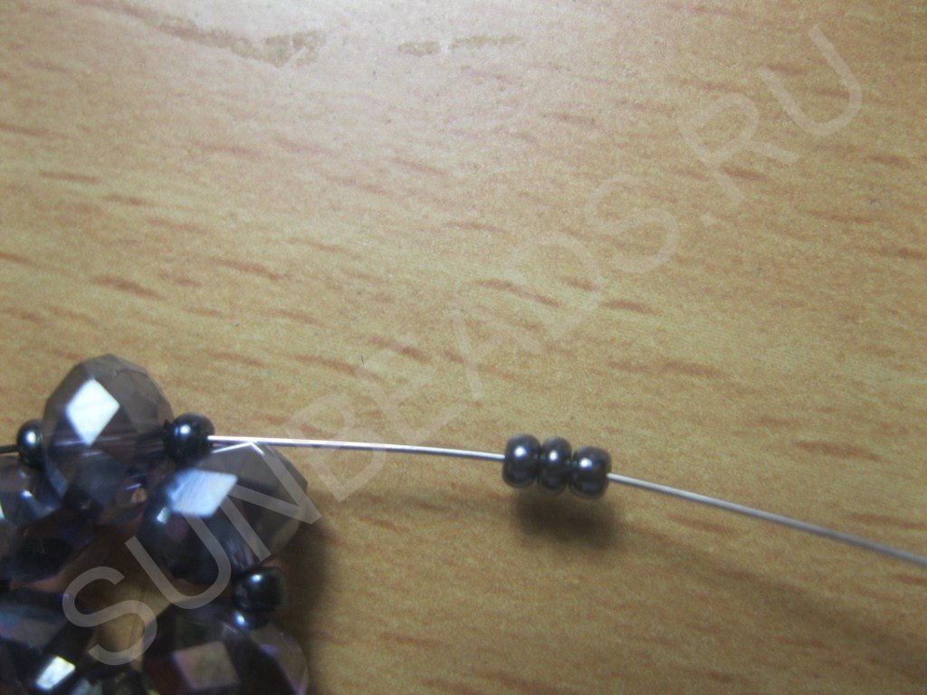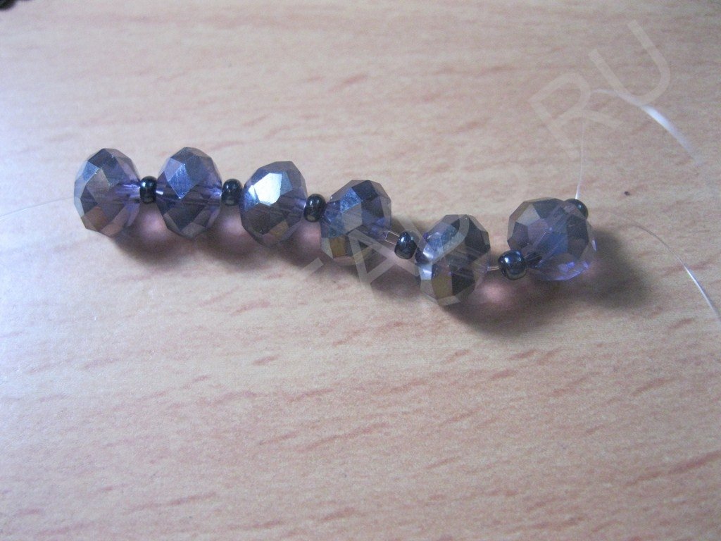 Набираем на нить бусины и бисер в следующем порядке: бусина+бисерина и так шесть пар: