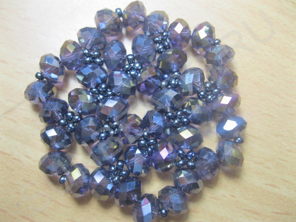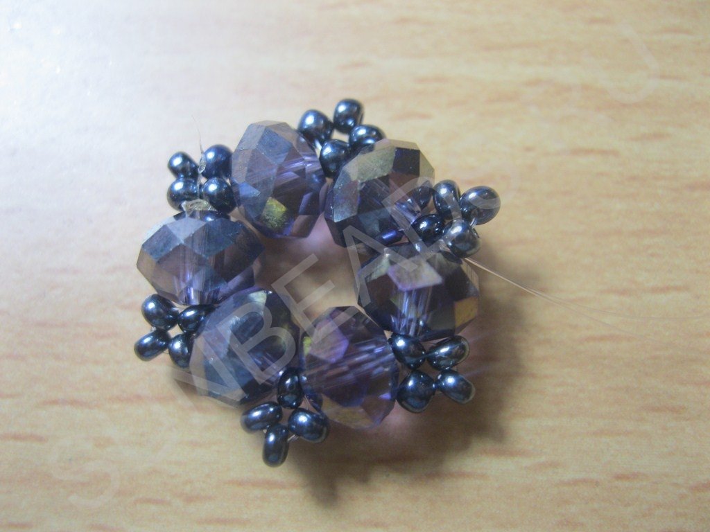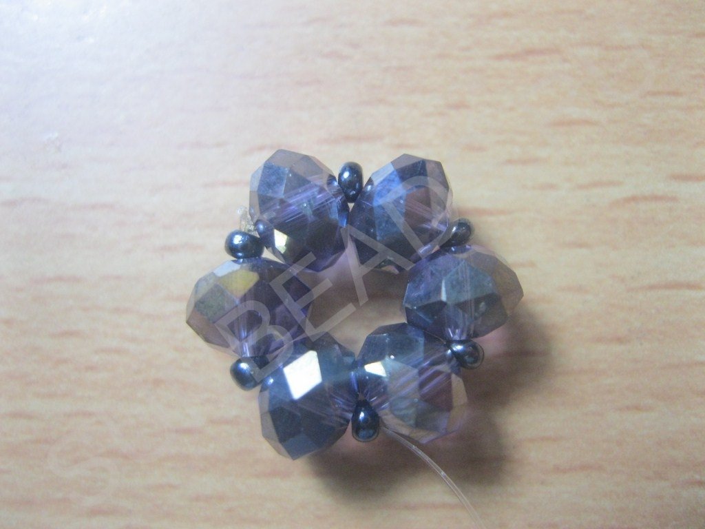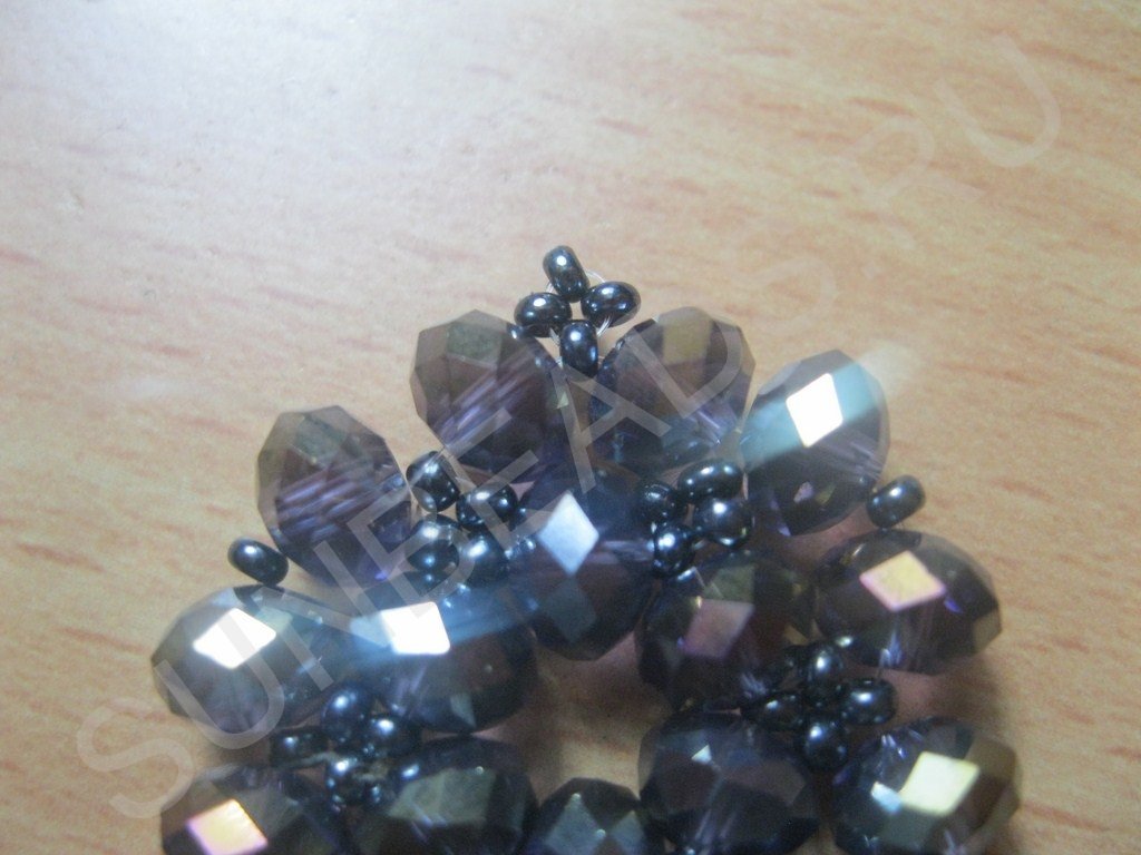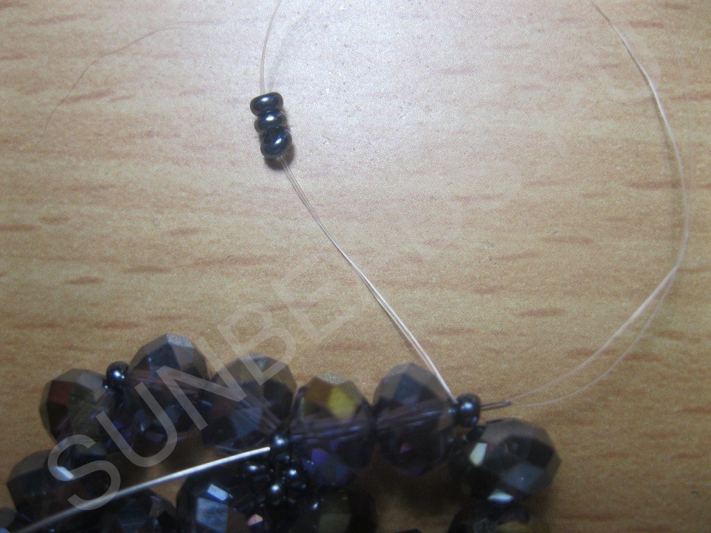 Набираем на нить бусины и бисер в следующем порядке: бусина+бисерина и так шесть пар: