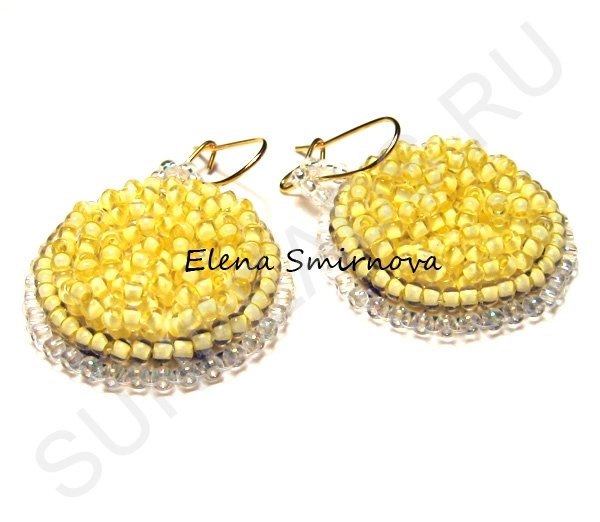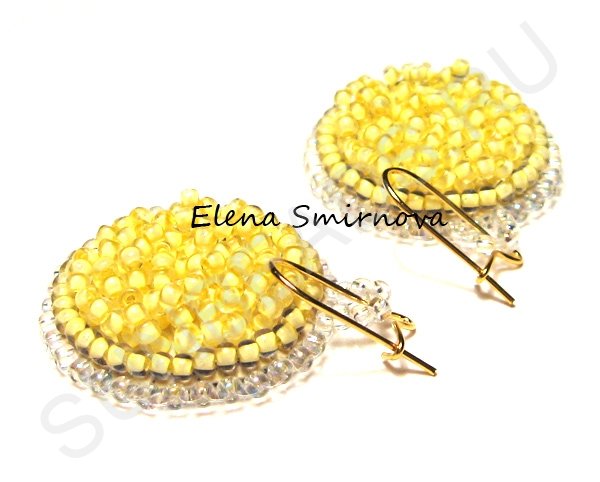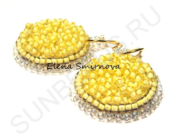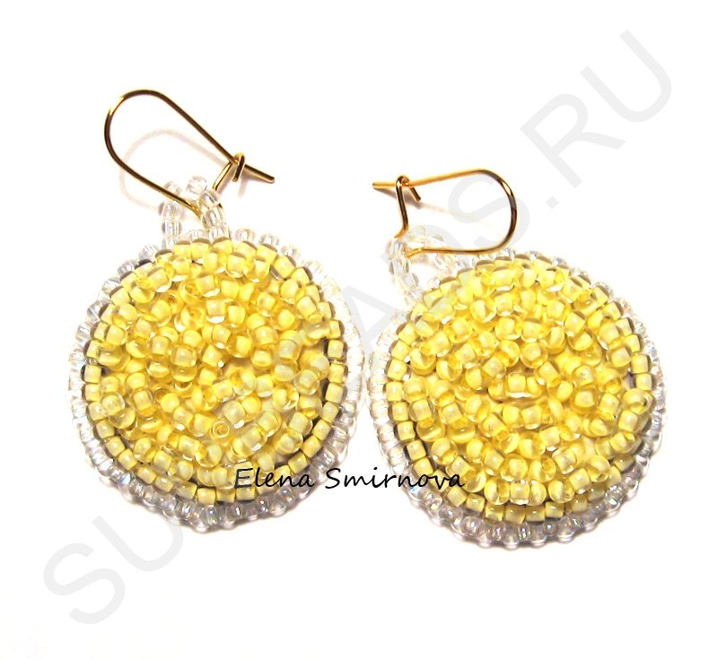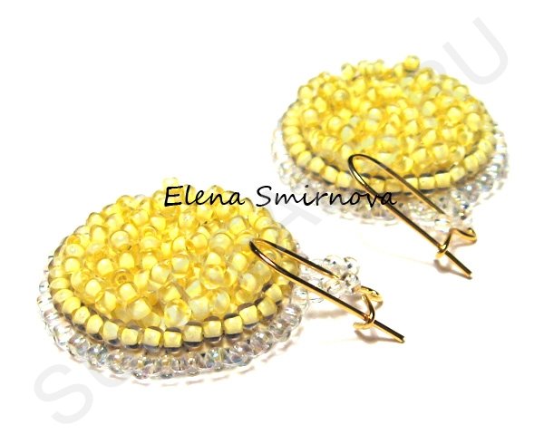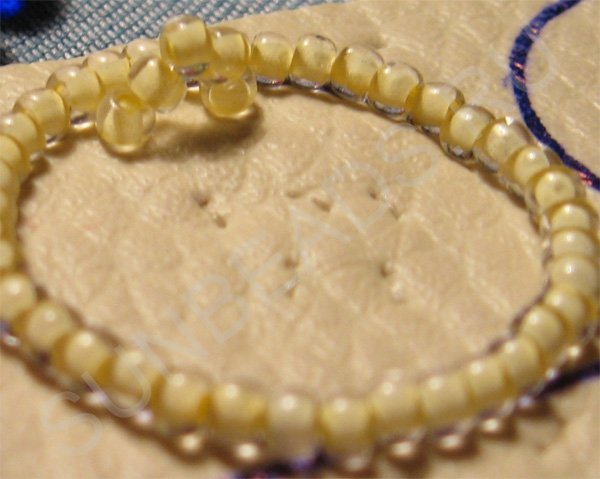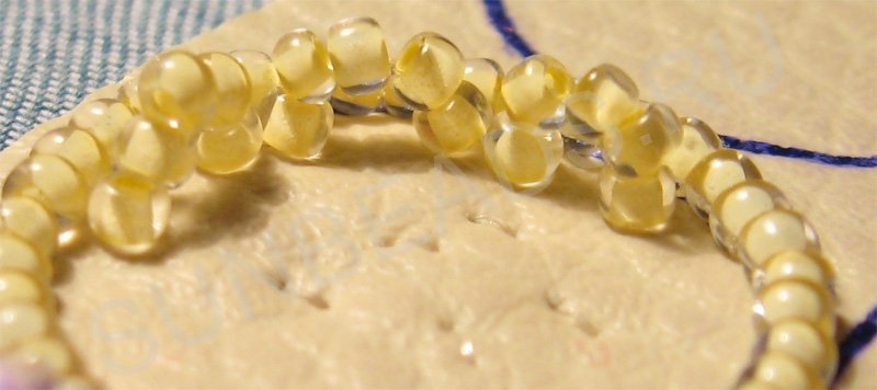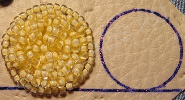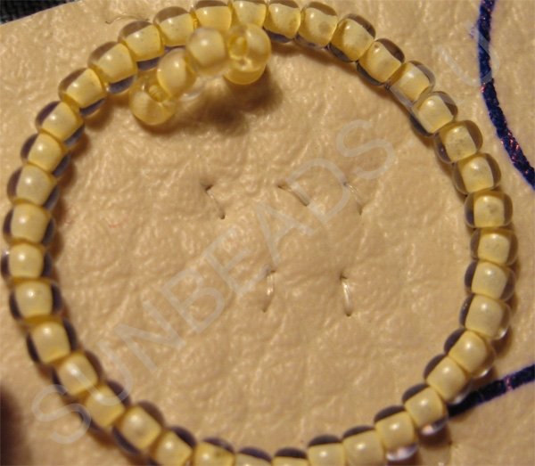 бисер нежного желтого оттенка. А для оформления вышивки я использовала прозрачный бисер.