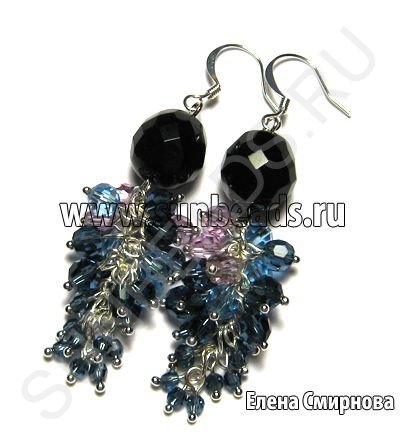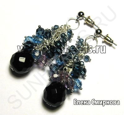 Во втором варианте крепим крупную бусину снизу. Присоединяем швензы с помощью колечек.