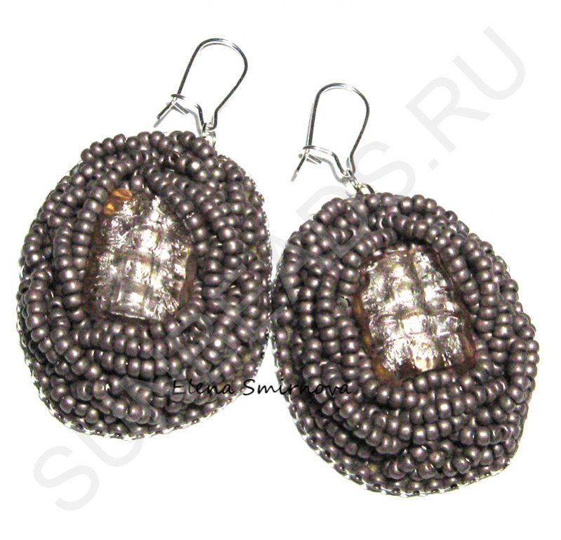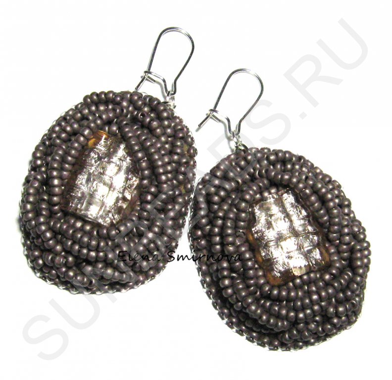 Серьги в объемной бисерной вышивке с бусинами lampwork#