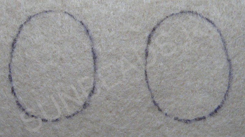 Рисуем на ткани 2 овала, чтобы вокруг бусины оставался примерно 1 см.