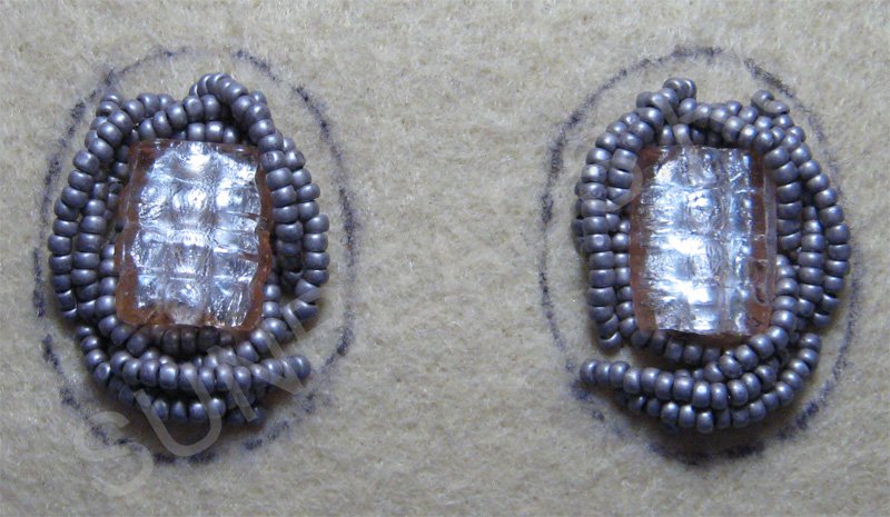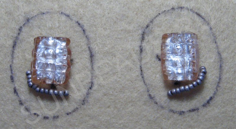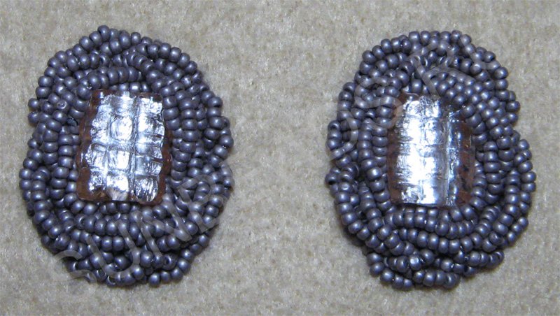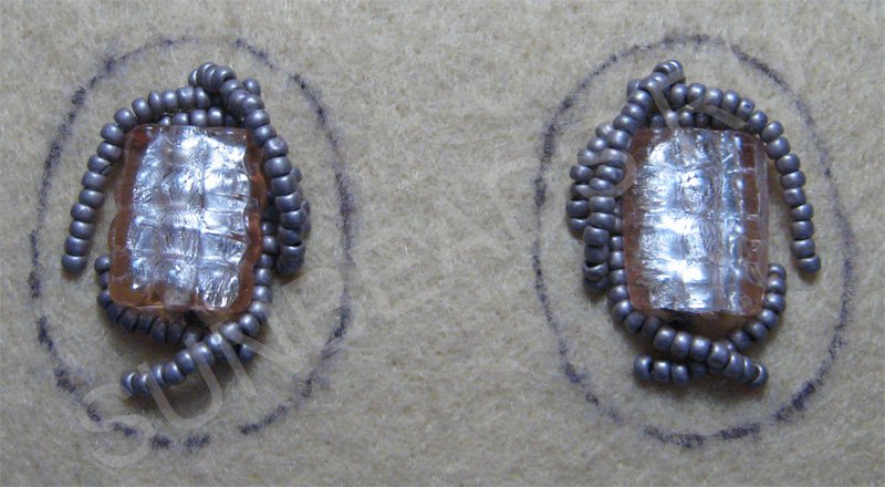 Вышиваем одновременно на обоих овалах, чтобы в итоге получить одинаковый бисерный узор на серьгах.
