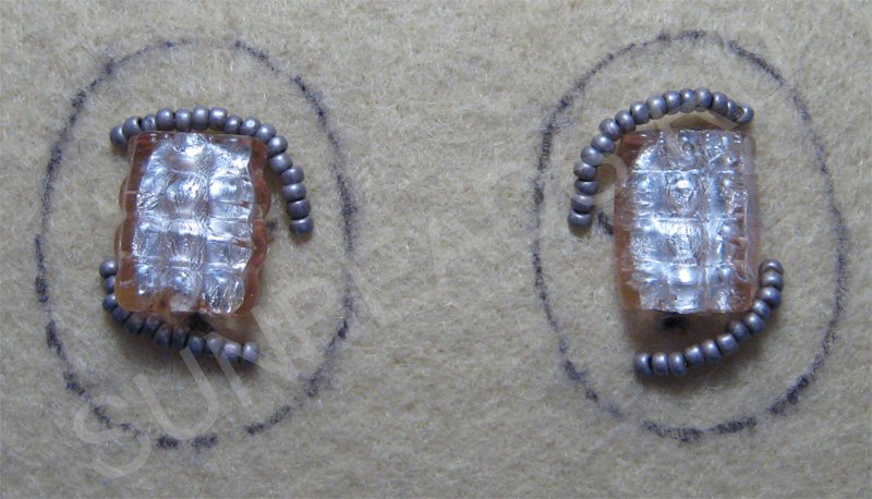 Пришиваем дуги из бисера вокруг бусин, постепенно заполняя все пространство овалов.