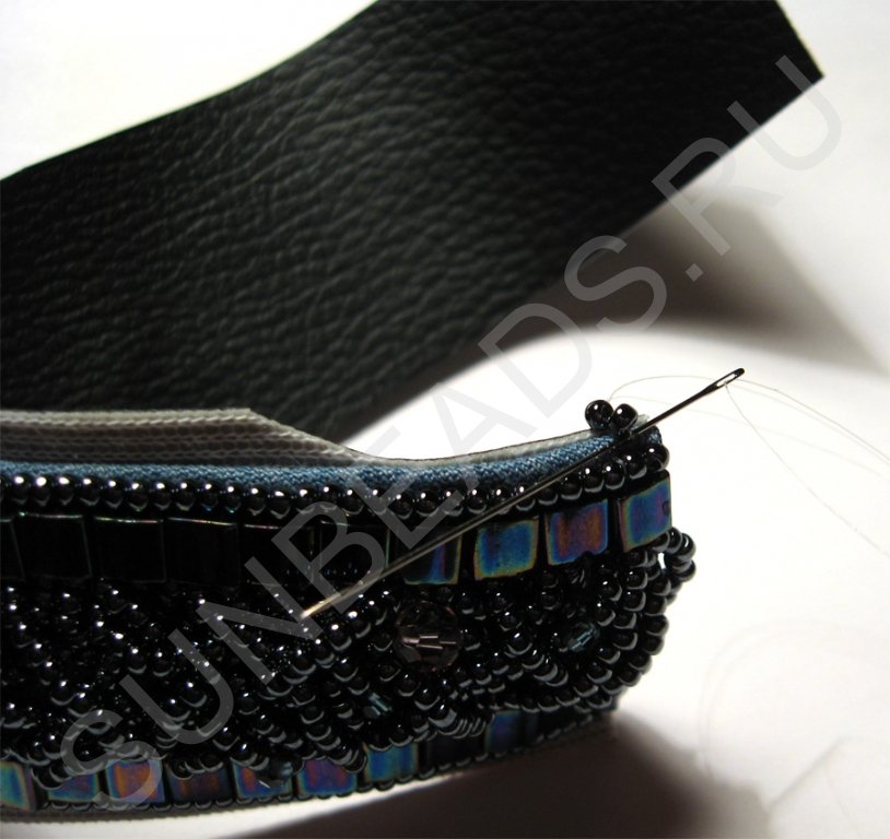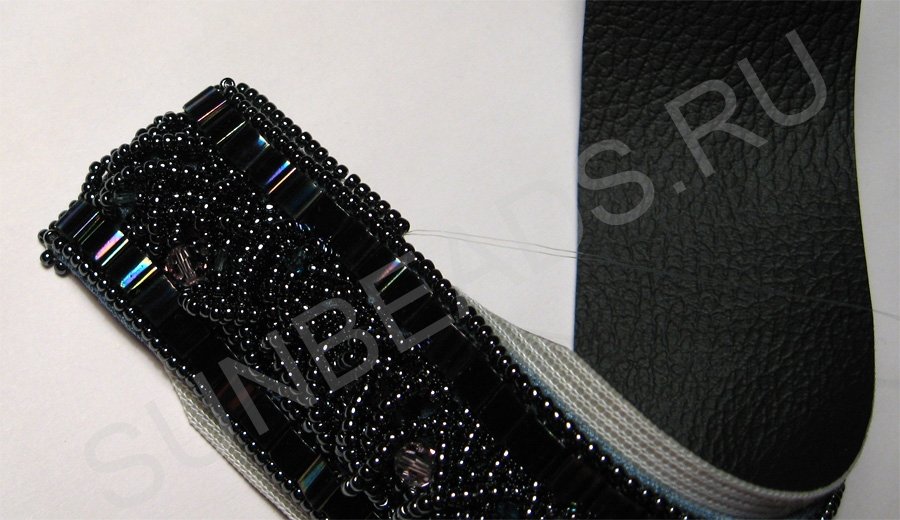 Сшиваем 2 слоя: вышивку и внутренний слой браслета (в данном случае это искусственная кожа).